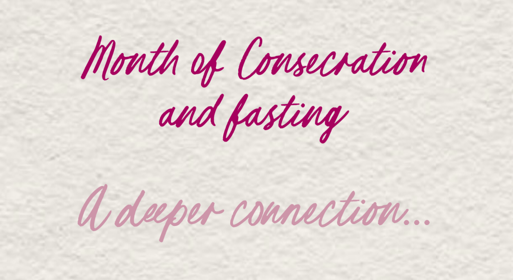 As with any fast/consecration there should always a time daily for devotion and prayer. We want to pray in alignment with our daily focus as noted above.